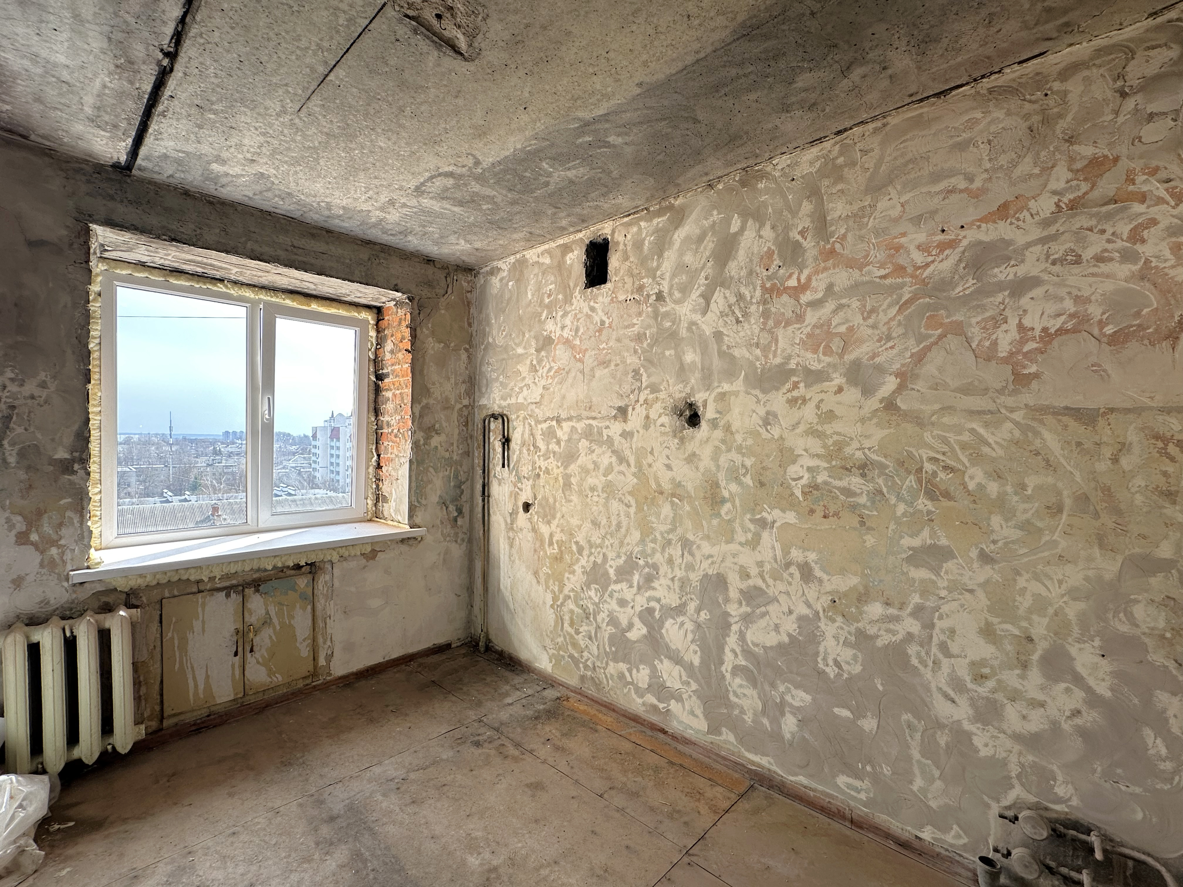 Квартира требует вложений, после пожара в зоне кухни, всё вычищено и без запаха, да собственно и до этого ремонта там не было.